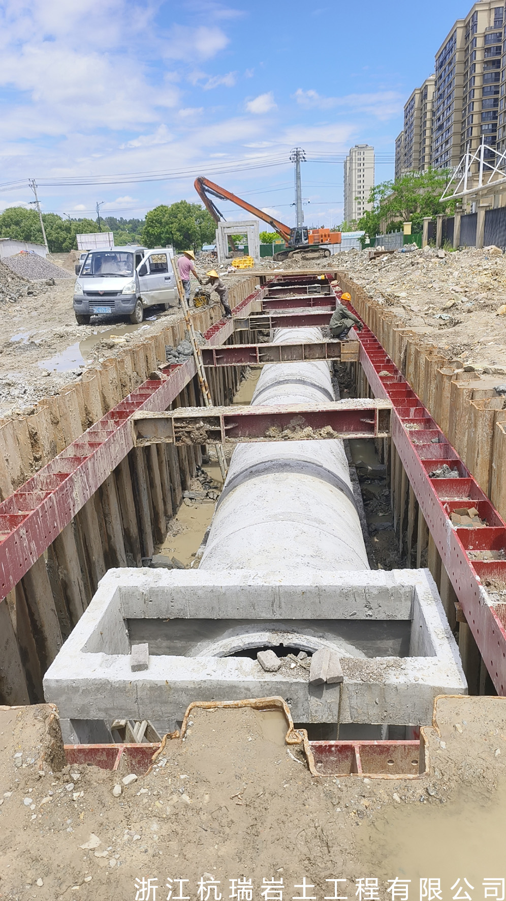 浙江杭瑞巖土工程有限公司, 成立于2016年,本公司是一家從事巖土設計、巖土監測的深基坑圍護的公司。公司主要承接打拔Pc工法樁,Pc鋼管樁,Pc工法組合樁,板樁,打拔管樁,鋼便橋搭設以及圓管樁、拉森樁、貝雷架、型鋼、鐵板及路基板的租賃。公司有12米、14米、16米、18米等型號長度圓管樁30000余噸,有9米、12米、15米、18米等拉森鋼板樁10000余噸,450、470打樁機多臺。曾參與溫州地鐵S1線基坑圍護、甌江口大